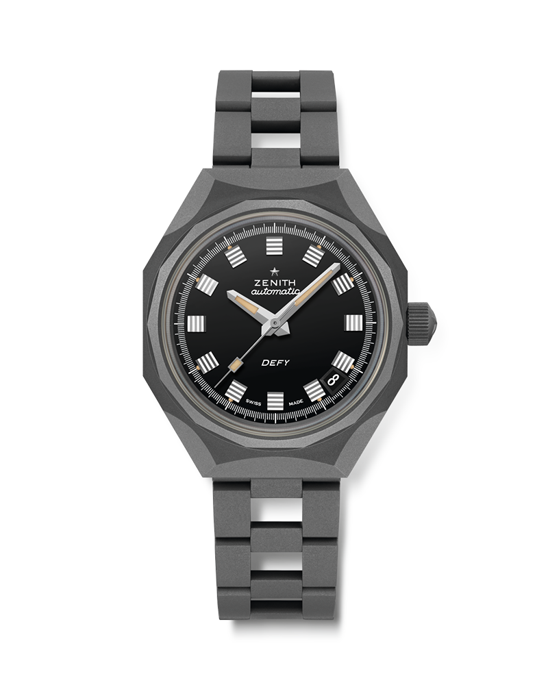 DEFY Skyline in a 41mm black ceramic octagonal case with a faceted bezel, featuring a...