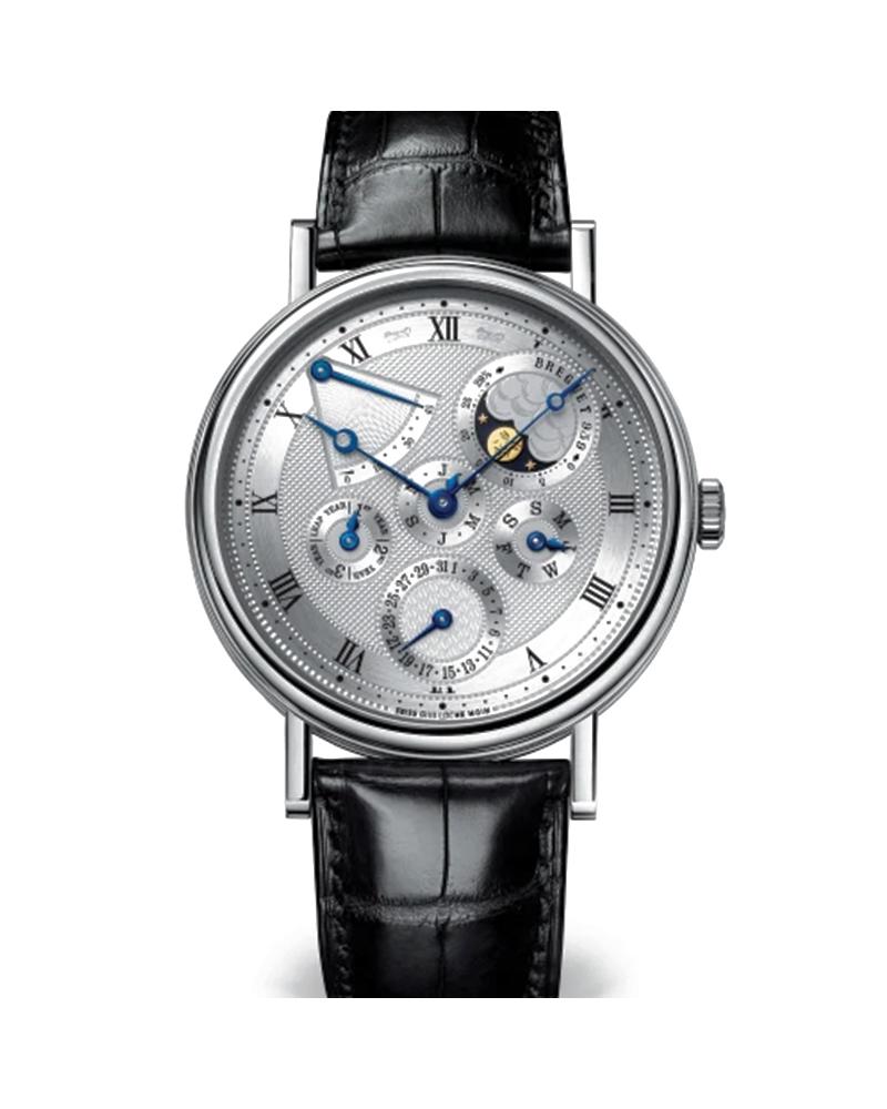Self-winding movement engraved by hand, with perpetual calendar showing the day, date, month, leap year...