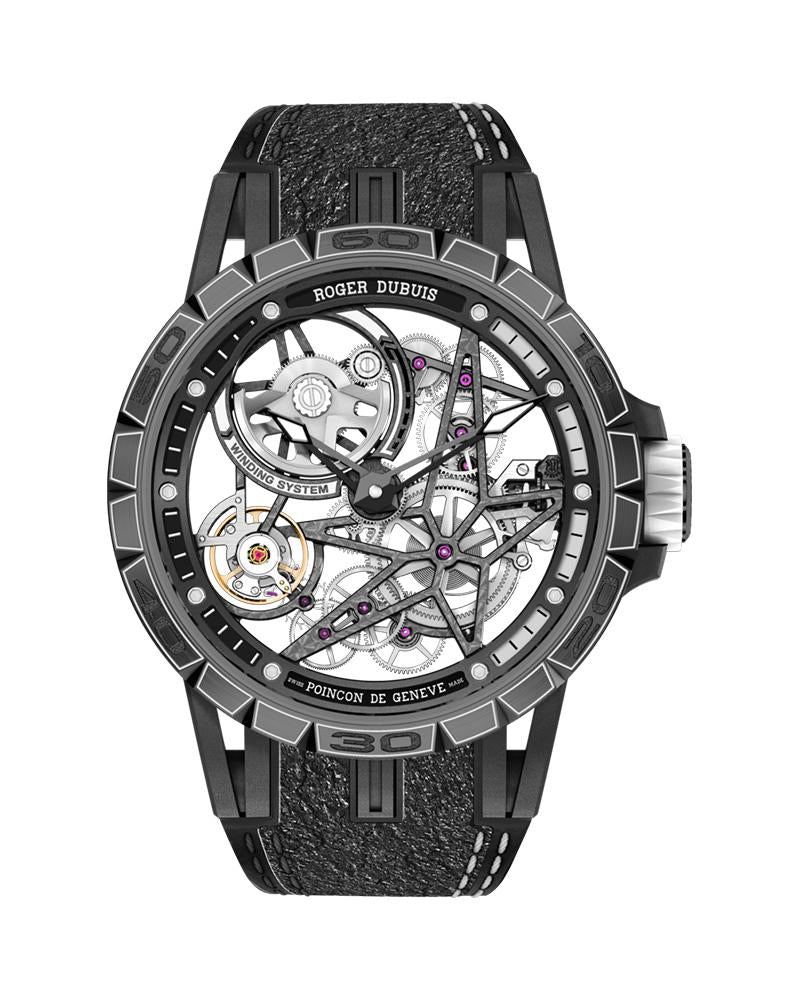 The skeleton calibres manufactured by Roger Dubuis in Geneva are the essence of the expressive...