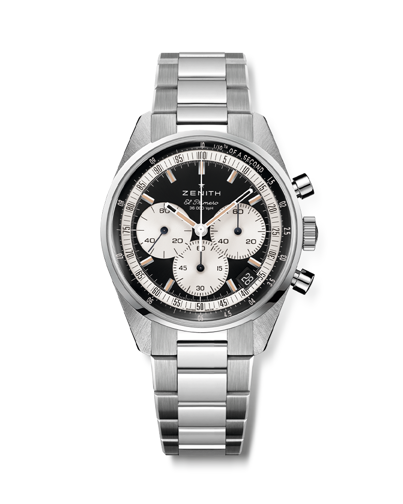 The CHRONOMASTER Original is crafted in a 38mm steel case in the same proportions as the A386, paired with a black "reverse panda" dial and a steel bracelet. Powered by the El Primero 3600 automatic high-frequency chronograph movement with 1/10th of a second chronograph function and a power reserve of 60 hours.