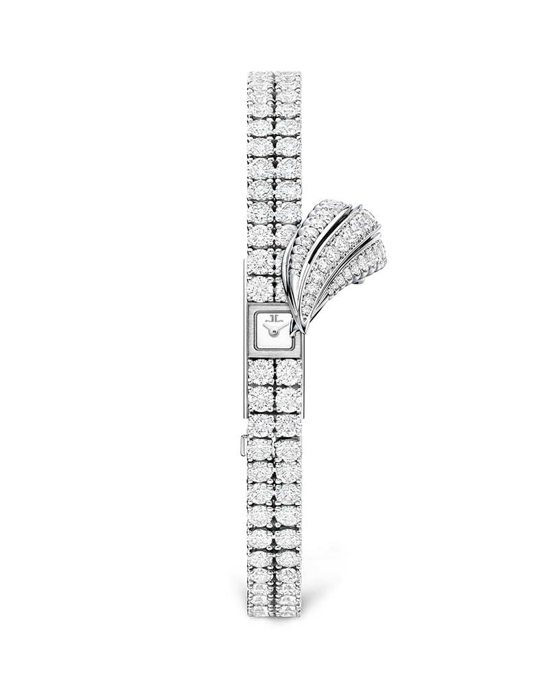 Under its veil of diamonds, the new 101 Feuille watch for women in white gold combines watchmaking expertise and jewellery perfection, a tradition at Jaeger-LeCoultre. After the 101 Reine and 101 Feuille interpretations in rose gold were made available for the 2018 Venice Film Festival, the Grande Maison drew inspiration once more from its extraordinary legacy to bring an iconic model back to life, which was first created in 1959.