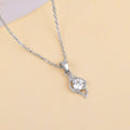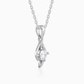 This silver pendant for women with a link chain features a leaf-shaped design. A single, sparkling zircon stone is placed in the centre.