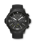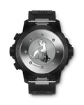 AQUATIMER CHRONOGRAPH EDITION ÒGALAPAGOS ISLANDSÓ - The rubber coating is applied in a complex vulcanization process and gives the watch an attractive look and feel of its own. This model is fitted with the reliable IWC-manufactured 89365-calibre movement and comes equipped with all the features that make the Aquatimer Chronographs so attractive for expeditions on land and underwater: external/internal rotating bezel with SafeDive system, integrated flyback function, water-resistance to 30 bar and Super-LumiNova luminescent coating. IWC Schaffhausen is not the owner of the Super-LumiNova trademark.