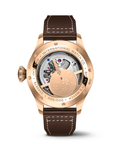The Big Pilot’s Watch 43 Tourbillon Le Petit Prince features a flying hacking minute tourbillon, an 18-carat Armor Gold® case and a deep blue dial with a beautiful sunray finish.With the Big Pilot’s Watch 43 Tourbillon Le Petit Prince, IWC Schaffhausen continues the tradition of Pilot’s Watches in honour of Antoine de Saint-Exupéry’s world-famous novel “Le Petit Prince”. Just as writing and flying were inextricably linked for Saint-Exupéry, this special edition is a perfect symbiosis of poetry and technology. Limited to 300 pieces, this Big Pilot’s Watch impresses with a 43-millimetre case and crown made of 18-carat Armor Gold®. This alloy is significantly harder and more wear-resistant than conventional 5N gold due to its improved microstructure. Contrasting with the case is the deep blue dial with a radiant sunray finish. The gold-plated hands and appliques, filled with Super-LumiNova®, emit an enigmatic glow in the dark. The star on the dial is the flying minute tourbillon at 6 o’clock. An ingenious horological invention, the tourbillon – French for “whirlwind” – involves the balance wheel rotating around its axis in a cage. This constant rotation not only provides a visual spectacle on the dial but also reduces the influence of gravity on the oscillation system, thereby increasing accuracy. Thanks to the integrated tourbillon stop, the mechanism can be brought to a complete stop and the watch set with down-to-the-second accuracy. The Big Pilot’s Watch 43 Tourbillon Le Petit Prince is powered by the IWC-manufactured 82905 calibre. It features a Pellaton winding system reinforced with ceramic components. Using movements of the rotor in both directions, it reliably builds up a power reserve of 80 hours in the mainspring. A special highlight is the rotor made of solid 18-carat gold. It takes the shape of the Little Prince standing on his asteroid and can be admired through the transparent sapphire glass case back. The watch is fitted with a brown calfskin strap with an 18-carat Armor Gold® folding clasp.