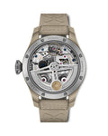 The Big PilotÕs Watch and the perpetual calendar are a perfect match. The four sub dials and the four-digit year display are shown off to high effect on the large dial. The date, weekday, month and moon phase are also effortless to read. For the first time, IWC is now combining a Big PilotÕs Watch Perpetual Calendar with a sand-coloured ceramic case, the hallmark of its ÒMojave DesertÓ editions. The subdued dark brown dial and the sand-coloured rubber strap with textile inlay complement the unique military design. The inspiration came from the flight suits of Navy pilots and the barren landscape of China Lake, the US NavyÕs largest land area in the Mojave Desert. The perpetual calendar is mechanically programmed to automatically recognise the different months lengths and the leap years. It will continue running correctly without any manual correction until the year 2100. The calendar module is driven by a single nightly switching impulse delivered by the IWC-manufactured 52615 calibre. Two barrels, wound up by a Pellaton winding system with ceramic components, store a comfortable seven days power reserve.