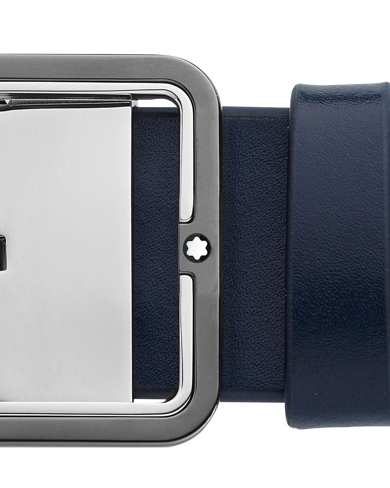 A slick and contemporary buckle accompanies a classic leather band on this belt, with a two-tone effect complemented by the signature Montblanc emblem. The self-adjustable strap is designed with a different color on each side, making for reversible styling options.