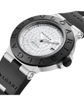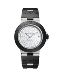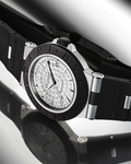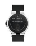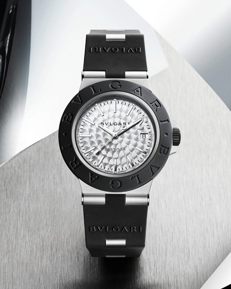 Boldly going beyond trends and eras, Bulgari Aluminium has redefined what a luxury sports watch can be. For this Special Edition, the RoMen Maison has teamed up with artist Hajime Sorayama to introduce an unprecedented interpretation of the watch’s dial. With its aluminium case and unmistakable black rubber bezel and bracelet, the timepiece is made from bold and unconventional materials, speaking a universal language that approaches the watchmaking world with refreshing and incredibly modern allure. Bulgari Aluminium Sorayama Special Edition watch with mechanical Menufacture movement, automatic winding, HMSD, 42-hour power reserve, 40 mm aluminium case with DLC, black rubber bezel with BVLGARI BVLGARI engraving, DLC-coated titanium crown, silvered dial with perlage pattern, indexes with SLN, rhodium-plated hour and minute hands with SLN, titanium-coated caseback personalised with Sorayama logo and limited edition number, black rubber bracelet and pin buckle. Water-resistant up to 100 metres. Special Edition limited to 1.000 pieces.