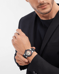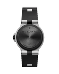 From the first-generation models launched in 1998, Bvlgari Aluminium has redefined what a luxury sports watch can be. Speaking a universal language that goes far beyond gender, age, trends and eras, forever approaching the watchmaking world with boldness and a pioneering spirit. With its unconventional combination of state-of-the-art materials, the timepiece has a matching aluminium case with a black rubber bezel and strap, and it is powered by an in-house automatic movement with GMT function. Bvlgari Aluminium GMT watch with mechanical movement, automatic winding, hours, minutes, seconds, date and GMT 24h functions, 42 hours power reserve. B192 calibre, 40 mm aluminium case with DLC treatment, black rubber bezel with double logo engraving, white dial with black and red inner dial, black SLN™-filled indexes and hands, 24-hour hand with red and white tip, date opening at 3 o'clock, titanium caseback, aluminium links, black rubber bracelet and aluminium pin buckle. Water-resistant up to 100 metres.