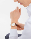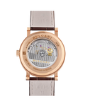 A reinterpretation of the iconic model first launched in 1977, the timeless BULGARI BULGARI watch with an 18 kt rose gold case and brown bracelet embodies a story of bold creativity and innovative Italian style. Inspired by the curved inscriptions on ancient RoMen coins, the unmistakable double logo engraved on the bezel that frames the white opaline dial, propelled the brand's name to the status of iconic design Maison. Powered by a mechanical automatic movement, the watch that sparked a revolution and remains a powerful reference point that transcends both time and trends.