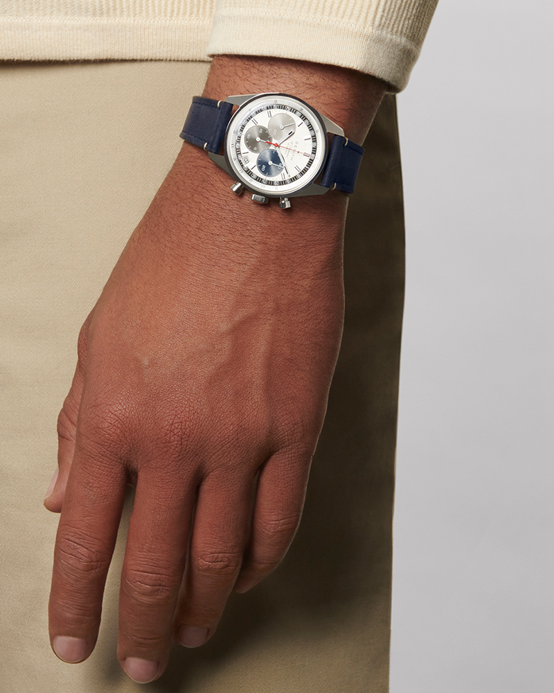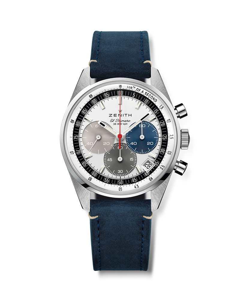 The CHRONOMASTER Original is crafted in a 38mm steel case in the same proportions as the A386, paired with the iconic tri-colour dial and a blue leather strap. Powered by the El Primero 3600 automatic high-frequency chronograph movement with 1/10th of a second chronograph function and a power reserve of 60 hours.