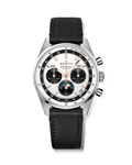 The CHRONOMASTER Original Triple Calendar is crafted in a 38mm steel case with black calfskin strap, paired with a silvery-white “panda” dial displaying the day, date, month and moonphase. Powered by the El Primero 3610 automatic high-frequency chronograph movement with 1/10th of a second chronograph function and a power reserve of 60 hours.