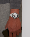 The CHRONOMASTER Sport combines elements of past ZENITH chronograph references such as the tri-colour dial, pump-style pushers and steel bracelet with a black ceramic bezel, all in a modern 41mm case. This version features a white dial paired with an integrated steel bracelet. Powered by the El Primero 3600 1/10th of a second automatic chronograph movement.