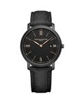 Embark on adventures with this watch powered by a quartz movement, offering 5 years of reliability. Encased in a 39mm sandblasted steel-ADLC case, its opaline black dial exudes rugged elegance. Paired with an interchangeable black fabric strap from Holland & Sherry, it's ready for any journey with its dependable lug system for easy strap changes.Experience the spirit of urbanity with this timepiece, housed within a sandblasted steel-ADLC case, its round silhouette radiates rugged charm and durability. The opaline black dial, adorned with sun satin-finished lines decor and a black flange, captures the essence of nature's beauty, while gilded Roman numerals and leaf hands guide you through each moment. Enhancing its versatility with the interchangeable black fabric strap from Holland & Sherry, offering a touch of sophistication to every adventure. From urban escapades to wilderness journeys, this watch is more than just a timepiece; it's a trusted companion, ready to accompany you on every exploration with style and reliability.