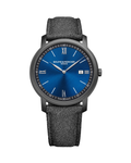 Experience the spirit of urbanity with this timepiece, housed within a sandblasted steel-ADLC case, its round silhouette radiates rugged charm and durability. The blue dial, adorned with sun satin-finished lines decor and a black flange, captures the essence of nature's beauty, while rhodium-plated Roman numerals and leaf hands guide you through each moment. Enhancing its versatility with the interchangeable grey fabric strap from Holland & Sherry, offering a touch of sophistication to every adventure. From urban escapades to wilderness journeys, this watch is more than just a timepiece; it's a trusted companion, ready to accompany you on every exploration with style and reliability.