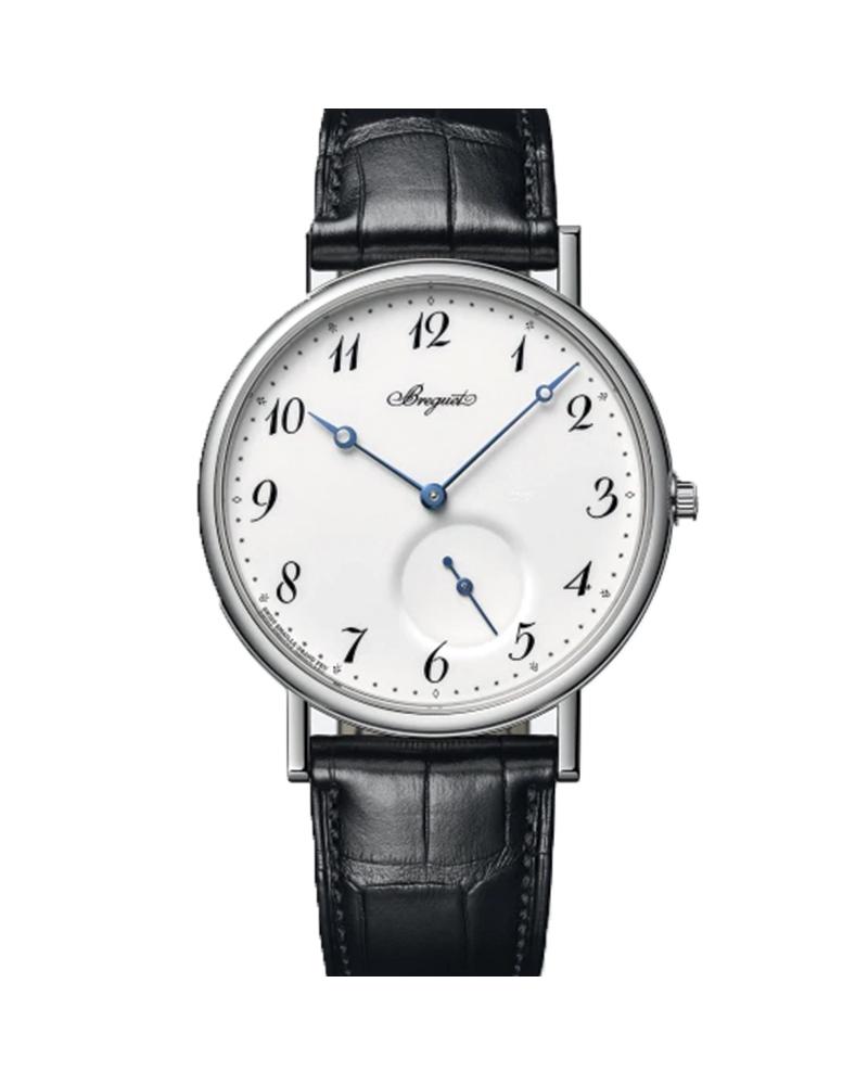 Dial in ÒGrand FeuÓ enamel. Signed Breguet. Hours chapter with Arabic Breguet numerals. Small seconds offset at 5 o clock. Breguet open-tipped hands in blued steel.
