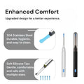 Designed for both comfort and durability, the ClearView Pro features a 304 stainless steel tip that’s washable and long-lasting. It comes with five soft, replaceable silicone scoops in various sizes to ensure a gentle and precise cleaning experience. Plus, its automatic heat-control system prevents overheating, keeping your ears cool and comfortable.