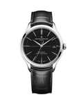 A Swiss chronometer watch for men, the CLIFTON Baumatic 10692 and its manufacture automatic calibre Baumatic is a fitting timepiece for the modern individual. It features a black dial paired with a satin-finished stainless steel case and a finely-stitched black leather strap. This ultimate expression of the round watch, suitable for every style or circumstance and for everyone, showcases the hours, minutes, seconds, and the date, the latter in an enlarged aperture at 3 o’clock. These functions adorn a black lacquered dial punctuated by a white focal point pattern at its center. Carefully crafted, the indexes are riveted and rhodium-plated with a slightly elongated trapezoid shape; the hands are faceted, rhodium-plated, and alpha-shaped.