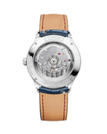As a moon-phase and date timepiece, the CLIFTON Baumatic 10756 embodies the quintessence of refinement with its stainless steel case, gradient blue lacquered dial and rhodium-plated attributes. It comes with an interchangeable blue strap adorned with tone-on-tone stitching.As the ultimate expression of the round timepiece, this sophisticated wristwatch with interchangeable blue strap is designed for today's active man. It is equipped with a Baumatic manufacture movement with a five-day power reserve. The traditional moon-phase complication at 6 o'clock enhances the gradient blue lacquered dial, with a date indication.