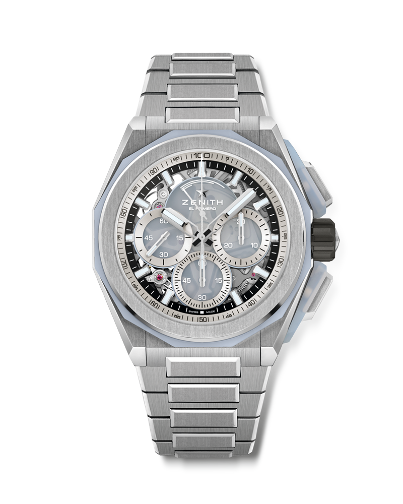 Limited to just 50 examples, the DEFY Extreme Glacier edition draws inspiration from the raw, elemental beauty of frozen glaciers. Crafted in titanium, the 1/100th of a second chronograph features the pusher protectors and bezel crafted in pale blue chalcedony gemstone, where variances in structure and colour result in each watch being unique. Paired with a frosted sapphire dial.