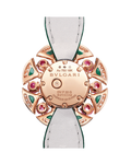 Feminine and flirtatious, the DIVAS' DREAM cocktail watch is an invitation to embrace life with passion. Inspired by the exuberance of the Dolce Vita, this sophisticated creation in 18 kt rose gold exudes the inimitable spirit of this golden era through the joyful colours of malachite inserts and pink tourmalines matched with a refined mother-of-pearl dial and green leather bracelet. A perfect harmony of sensuous shapes, alluring gems and high jewellery techniques, this piece boasts an incredibly flexible setting bringing a sense of movement to the collection’s iconic fan-shaped motif.