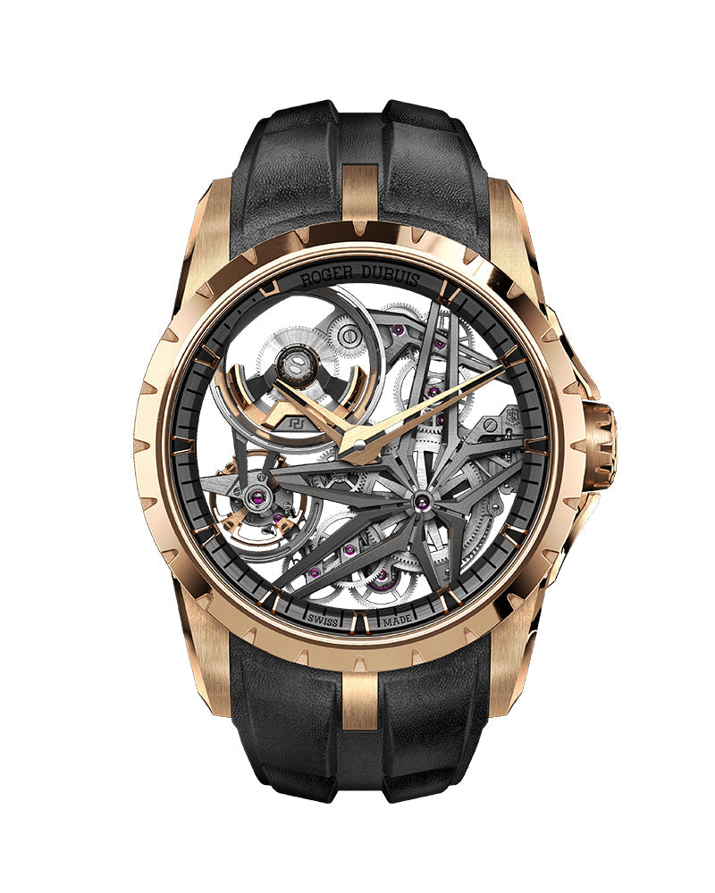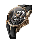 Excalibur Monobalancier - Automatic, Rose Gold case - 42mm - Black Leather strap - Dial- Grey double surface flange with transferred texts and minute track, polished and Pink gold plated hour markers with SLN in the center. CLASP - Pink gold cover with steel blades, triple folding, interchangeable with Quick Release System - QRS Type: Pink Gold 18K.Water Resistance: 10 bar (100 m)