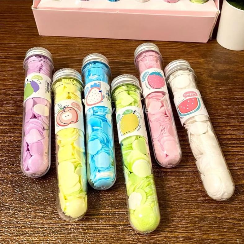FruityClean: Set of 3 Cute Travel-Friendly Hand Soap Paper Flake Tubes – Perfect for On-the-Go Hygiene