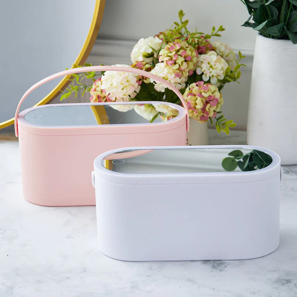 GlowPort: Cosmetic Organiser Box Makeup Storage Case with Detachable LED Mirror & Handle, Portable Vanity Case (USB-C Charging)