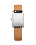 With its sleek black dial, rectangular steel case, and black leather strap, the HAMPTON 10760 epitomizes the pure elegance of black. This new addition to the HAMPTON Collection pays homage to the Maison's artistic vision, blending innovation and rigor to redefine the essence of timekeeping. This refined HAMPTON combines timeless style with long-lasting quartz movement, promising to grace wrists with elegance for years to come.The HAMPTON 10760 embodies the so-called French chic with its slender black silhouette and understated elegance, reminiscent of the iconic black garde-robe. Crafted with meticulous attention to detail, it features a monochrome black lacquered dial and precise rhodium-plated sword hands, exuding sophistication at every turn. Beyond its aesthetic allure, this timepiece offers versatility with interchangeable colorful straps, inviting wearers to explore new styles and express their creativity. Powered by a high-quality quartz movement, it boasts an impressive eight-year battery life, marrying style with performance for everyday wear.