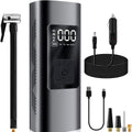 The Inflato Portable Air Compressor & Tire Inflator is a must-have for every driver. Designed for convenience and versatility, it features an 8000mAh rechargeable battery, making it perfect for on-the-go use. Its 150 PSI high-pressure capacity allows you to quickly inflate car, bike, and motorcycle tires, as well as sports balls and inflatable toys. With an LCD screen displaying real-time pressure readings and an auto shut-off function, it ensures safe and accurate inflation every time.