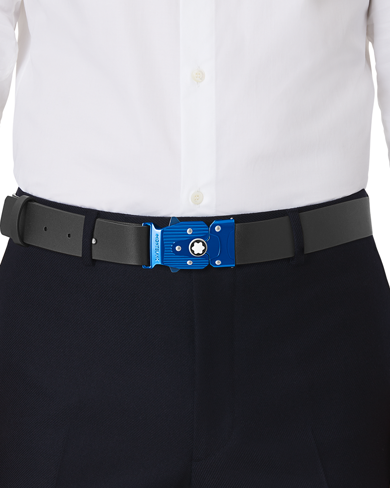 Introduced in blue aluminum, the M LOCK 4810 buckle brings out a distinctive style for urban explorers. With 35mm, this brown belt is crafted in plain leather and features Montblanc´s emblem on its buckle.