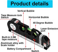 - 4‑in‑1 Functionality – Laser level, spirit bubble level, tape measure, and cross‑line projector all in one tool