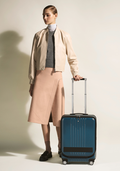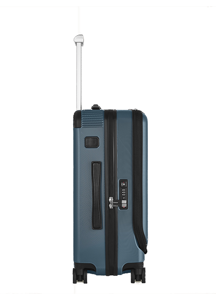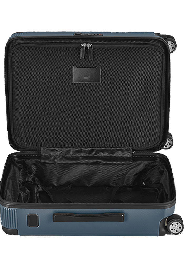 Set out on every journey in style with the #MY4810 trolley series. This cabin-size trolley, constructed of durable light polycarbonate in elegant avio blue and detailed with sleek black leather trims, offers practicality with its four smooth-rolling wheels, adjustable handle, and well-planned compartments for organised packing. With dimensions of 38 x 55 x 23 cm and a volume of 37 litres, it's typically suitable for carry-on. Nonetheless, given that hand and cabin luggage limitations can fluctuate across different airlines, we recommend verifying your airline's specific policies before you fly.