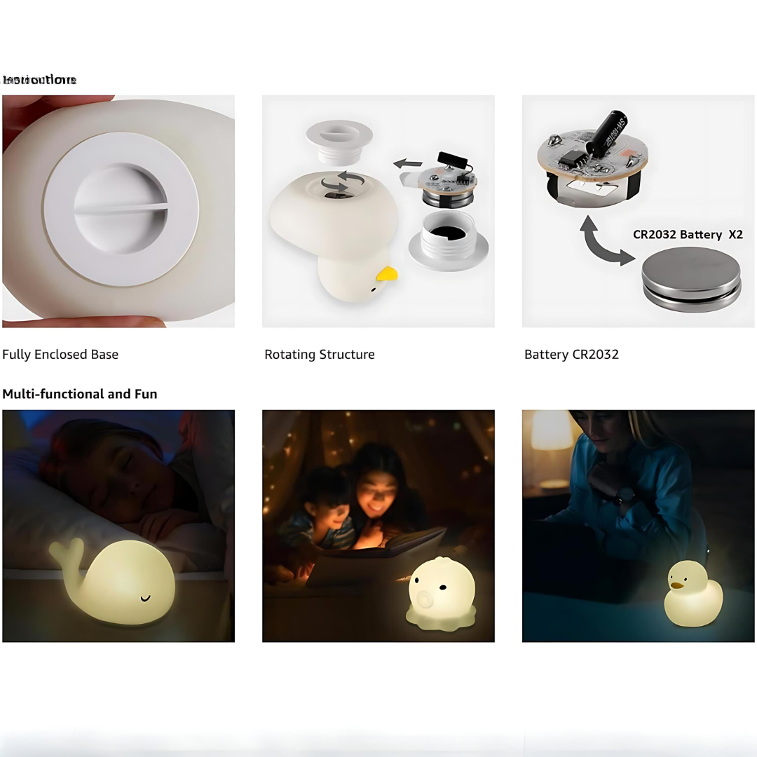 Each night light features a different marine animal – Dolphin, Whale, Shark, Duck, Octopus, and Turtle – making bedtime an exciting and soothing underwater adventure.