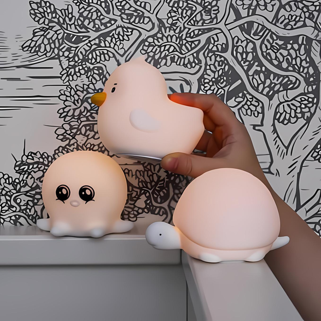 OceanPals: Set of 6 Adorable Ocean-Themed Squishy Night Lights with Soft LED Glow – Includes Whale, Shark, Octopus, Dolphin, Turtle & Duck