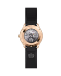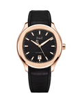 Piaget Polo Date watch, 42 mm. Case in 18K rose gold. Dial indexes and hands with SuperLumiNova®. Black dial and black rubber bracelet. Sapphire crystal case back. 1110P Manufacture automatic mechanical movement.