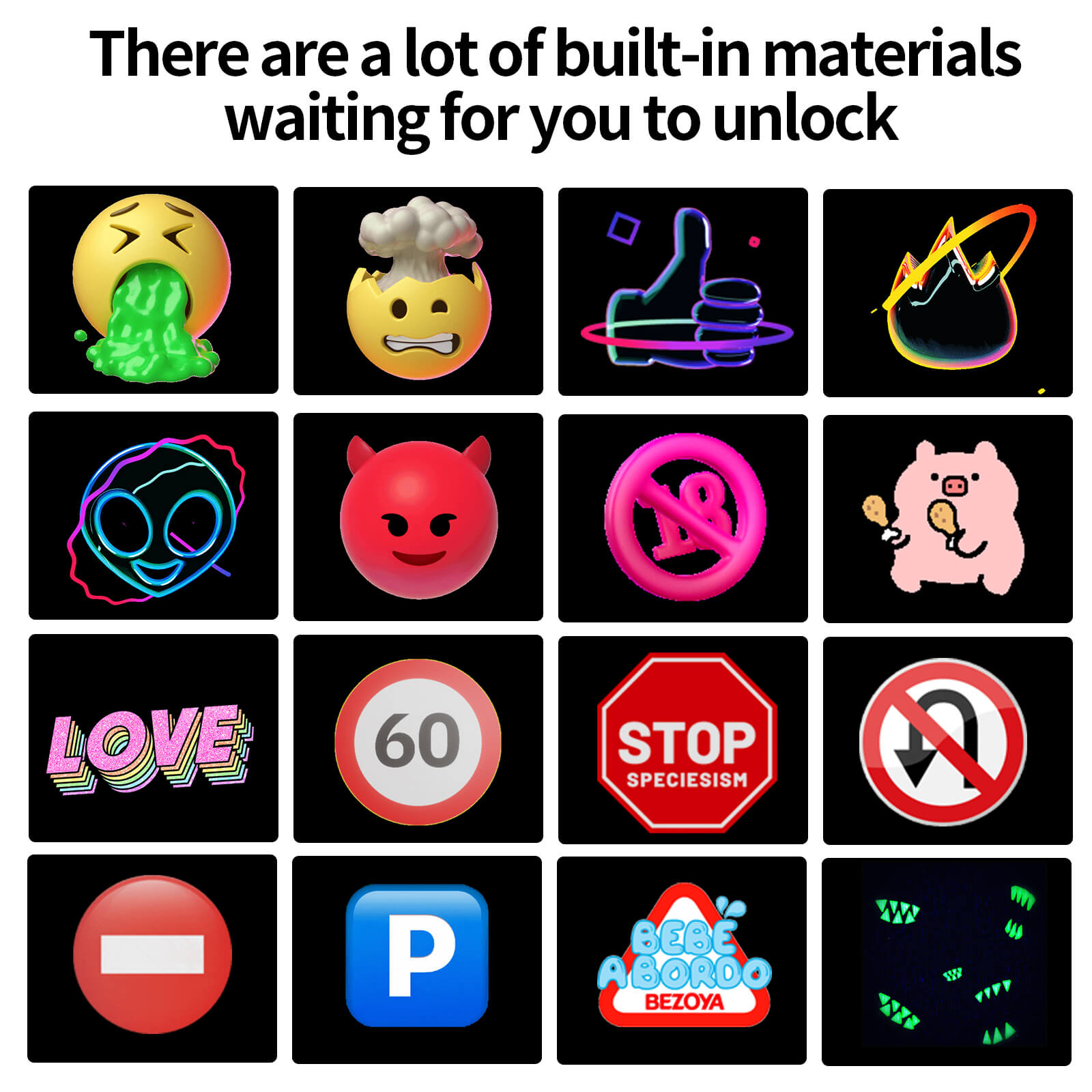 - Dynamic Pixel Art: Easily program custom animations, messages, or emojis for your car.
