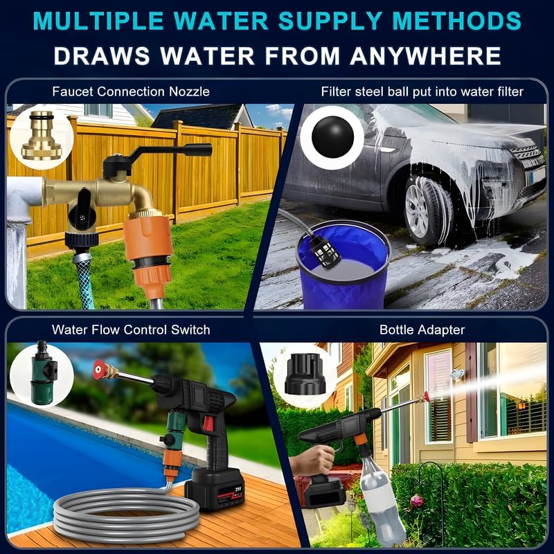 - Cordless & Portable: The 12000mAh battery ensures high pressure and convenience, allowing you to clean without being tethered to a power source.
