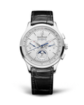 For the first time, the watchmakers of the Manufacture de la Vallée de Joux have combined the chronograph with a triple calendar in the Master Control collection. Combining characterful design and an automatic movement developed and assembled under the roof at the Manufacture, this benchmark collection has seduced lovers of beautiful objects since its creation in 1992. This undeniable success prompted Jaeger-LeCoultre to reinterpret the aesthetic and mechanical codes of this collection, while retaining its fundamental features. Rounded case. Noble attributes. High level of finish. In this highly balanced ensemble, the Master Control Chronograph Calendar in stainless steel features a chronograph and complete calendar