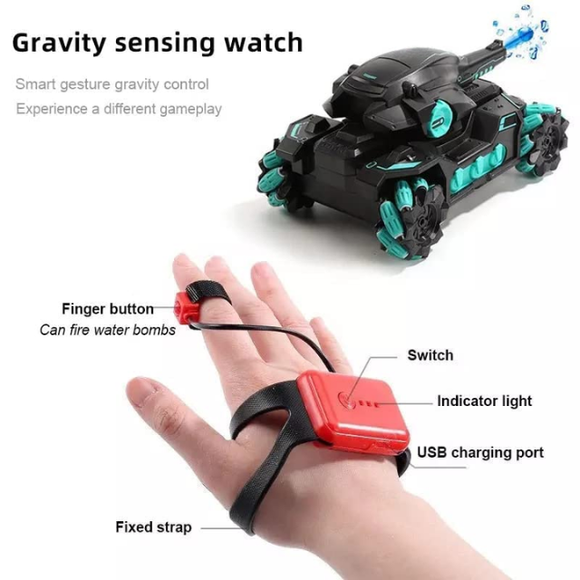 Tanko: RC Battle Car with Gesture Control & 360° Rotating Turret, Water Bullet Shooting, 4WD, High-Speed Drift & Rechargeable Battery