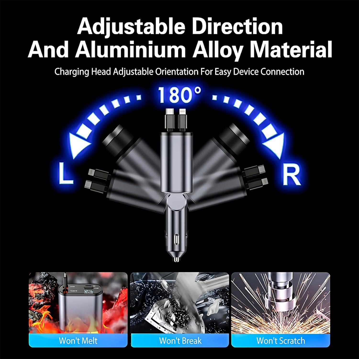 Stay powered on the road with the Terminal Retractable 4-in-1 Car Charger!