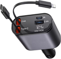 Terminal: 120W 4-in-1 Retractable Car Charger with Voltmeter, QC & PD Fast Charging, Dual USB Ports & Built-In Type-C + Lightning Cables